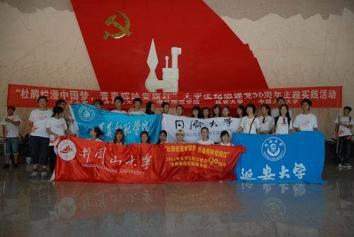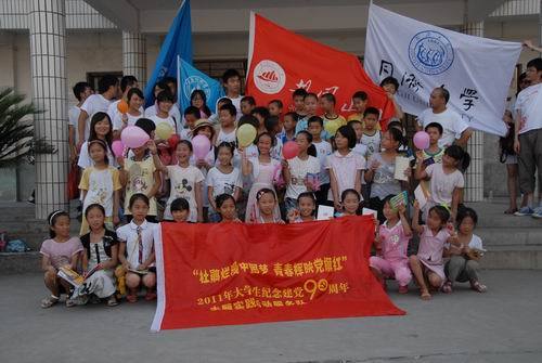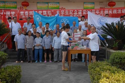 7月5日下午,在全国大学生纪念建党90周年主题实践团出征仪式结束后,同济大学、井冈山大学、遵义师范学院、延安大学、中国人民大学全体60余名队员来到永新县禾川镇敬老院,为10余名老人义诊和送医送药,受到老人的热烈欢迎。