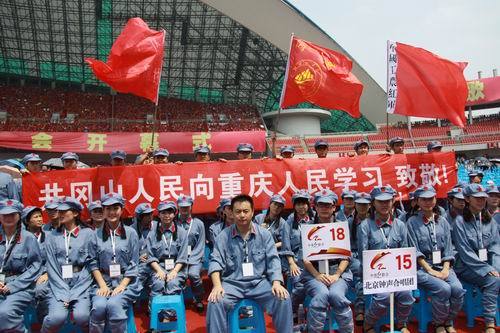 6月27日,我校合唱团前往奥体中心,进行2011(重庆)中华红歌会开幕式的彩排。本次红歌会共有来自全国三十一个省市自治区一百零八支合唱队参加。将有超过万人齐唱红歌。虽然中午骄阳似火。但是井冈山合唱团却向全体观众展现出了红色儿女的井冈精神。队员们的优秀演出,获得了大家的一致好评。
