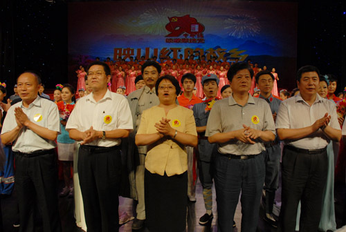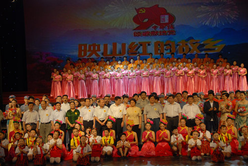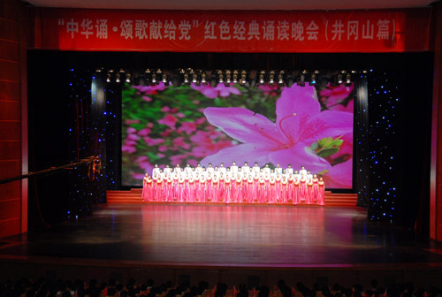 6月17日晚,为隆重庆祝中国共产党成立90周年,由教育部、国家语言文字工作委员会、中共中央党史研究室联合主办,中共江西省委教育工委、江西省教育厅、江西省语言文字工作委员会、中共江西省委党史研究室共同承办,井冈山大学、吉安市教育局、江西师范大学、南昌大学、江西科技师院协办的“中华诵·颂歌献给党”红色经典诵读晚会(井冈山篇)在吉安隆重举行。出席观看的领导有:教育部副部长、国家语委主任李卫红,江西省副省长、江西省语委主任孙刚,教育部社科司副司长徐维凡,教育部语用司副司长张世平,江西省委教育工委书记、教育厅厅长虞国庆,江西省委教育工委副书记史蓉蓉, 吉安市委书记周萌,江西省政府副秘书长叶磊,江西省委党史研究室副主任何友良,江西省教育工委委员、教育厅副厅长郭奕珊,井冈山大学党委书记万继抗,井冈山大学校长张泰城,井冈山大学副校长罗学渭、王伴青、肖长春,吉安市委常委、宣传部部长李文彩,吉安市委常委、市委秘书长刘连根,吉安市委常委刘宗华,吉安市副市长左继生等。观看晚会的有参演学校的领导、师生,井冈山大学、吉安市教育局的干部和师生等共1200人。