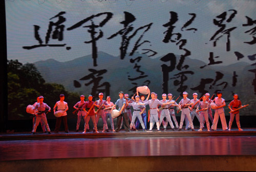 演出结束时,李卫红、孙刚、虞国庆等领导走上舞台,接见参演学生并与大家合影留念。