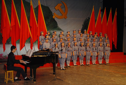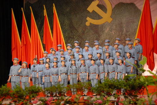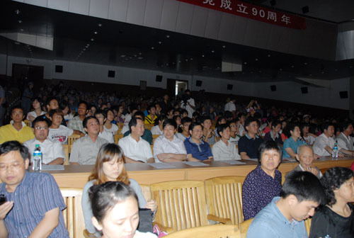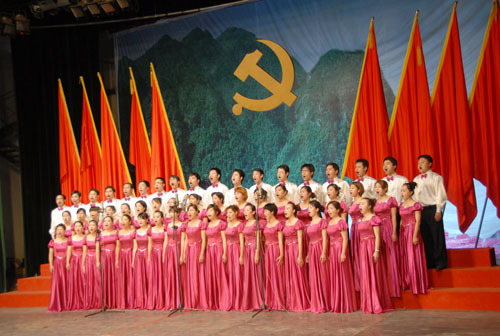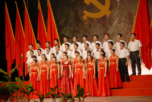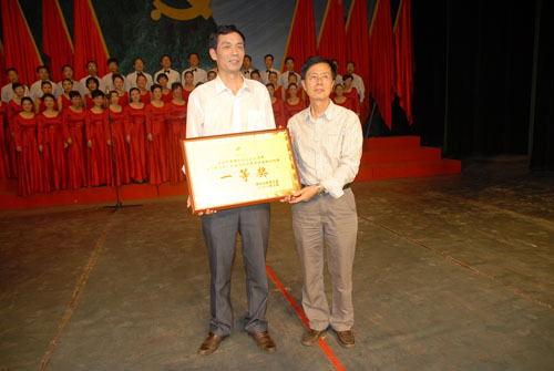 6月2日晚,我校隆重举行“永远跟党走”教职工红色歌曲歌咏比赛,这也是我校庆祝建党90周年系列活动的重头戏之一。机关各部门和各学院共800余名教职工分别组成21支代表队,登台合唱了40余首经典的红色歌曲。校领导金桂英、桂国庆、罗学渭、曾建平、肖长春,校长助理黄翔峰以及党委委员吕玉华、龙学先与1000多名师生员工共同观看了比赛。
