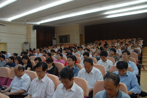 6月2日下午,学校召开2011年处级干部职务任期、交流轮岗及选拔任用工作动员大会。党委书记万继抗作动员讲话,校长张泰城主持,党委副书记、纪委书记金桂英宣读了中纪委、中组部和江西省委关于严肃换届纪律的规定,党委委员、组织部长龙学先宣读了《井冈山大学2011年处级领导干部职务任期、交流轮岗及选拔任用工作实施方案》。校领导桂国庆、罗学渭、曾建平、肖长春,校长助理黄翔峰,党委委员、办公室主任吕玉华出席。全校中层领导干部和正高职称人员参加了会议。