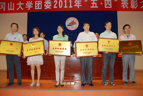 5月20日下午,我校召开2011年五四表彰大会。副校长肖长春,党委委员吕玉华、龙学先出席并为先进集体和先进个人颁奖。肖长春讲话,团委书记郭新春主持,团委副书记滕永琛宣读《关于表彰2010—2011学年度先进集体和个人决定》,护理学院团委获全省五四红旗团委,会上还表彰了一批省级先进个人,生命科科学学院团委、政法学院团委、人文学院团委、电子与信息工程学院团委、教育学院团委、艺术学院团委获校五四红旗团委称号,外国语学院团委、化学化工学院团委、商学院团委、体育学院团委、附属医院团委获校五四团建先进单位,护理学院学生会、工学院学生会、医学院学生会、数理学院学生会、继续教育学院学生会获校优秀学生会称号,谢世坤获2010年度江西省青年五四奖章。