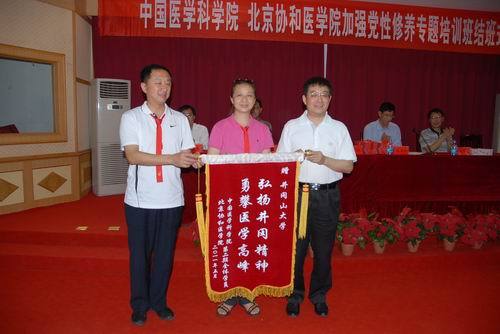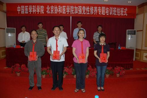 5月13日下午,中国医学科学院、北京协和医学院2011年领导干部“加强党性修养、坚定理想信念、继承优良传统”第二期专题培训班结班式在我校举行。中国医学科学院、北京协和医学院院校党委副书记李国勤,校长张泰城出席并为全体42名学员颁发结业证书,副校长桂国庆主持,副校长王伴青、肖长春出席。学员代表田力发言。学员代表向我校赠送了锦旗。
