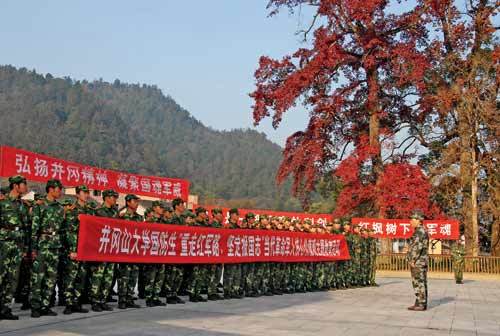 三湾枫树坪的军魂教育是井冈山大学国防生的必修课。