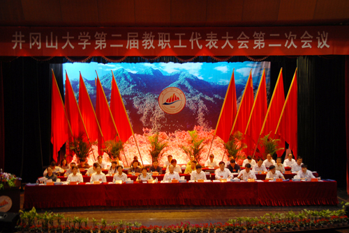 5月7日,我校召开了二届二次教职工代表大会。校党委书记万继抗出席,校长张泰城作学校工作报告,校党委副书记金桂英在会议闭幕时讲话。副校长桂国庆致开幕词,副校长罗学渭致闭幕词,校长助理黄翔峰作关于《井冈山大学“十二五”发展规划(2011—2015)》编制情况的说明。金桂英、桂国庆分别主持大会。副校长王伴青、曾建平、肖长春,党委委员吕玉华、龙学先出席。参加会议的正式代表164人,列席代表14人。会议听取、审议和通过了学校工作报告,听取、审议和通过了学校财务工作报告,听取了提案工作报告,听取、审议和通过了《井冈山大学“十二五”发展规划(2011—2015)》。