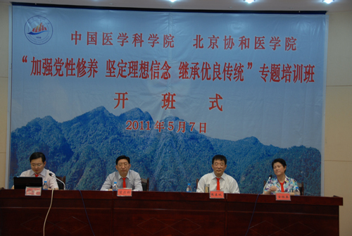 5月7日, 中国医学科学院、北京协和医学院2011年领导干部“加强党性修养、坚定理想信念、继承优良传统”第二期专题培训班在我校举行开班仪式。中国医学科学院、北京协和医学院副院校长曾益新院士出席开班式并讲话。校长张泰城出席,党委副书记金桂英致词,副校长曾建平主持。曾益新院士为第一期培训班授旗。