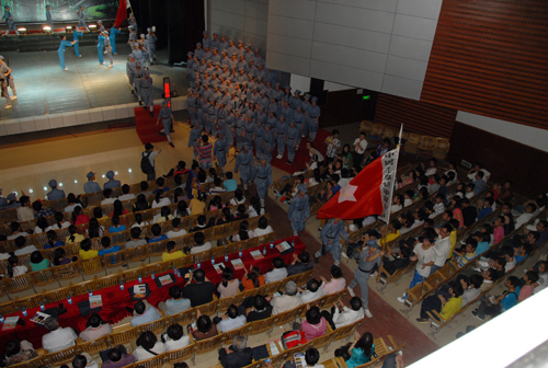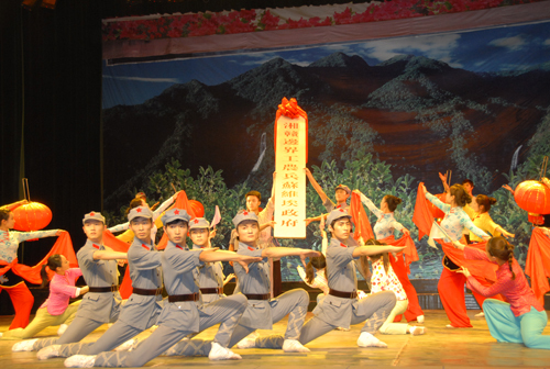 5月8日晚,中国医学科学院、北京协和医学院2011年领导干部“加强党性修养、坚定理想信念、继承优良传统”专题培训班第二期全体42名学员,在校观看了音乐舞蹈史诗《井冈山》,校长张泰城陪同。湖北省黄冈市红安县楚剧团的主要演员、编剧等一行19人专程前来观看。我校1000余名师生员工也一起观看。
