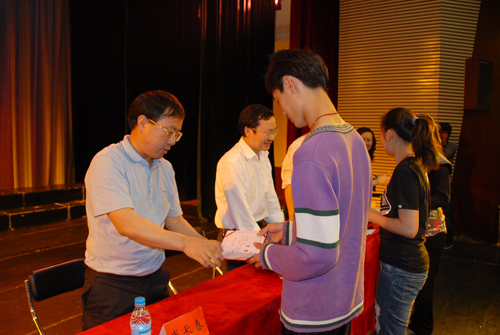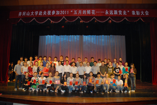 5月12日下午,学校隆重召开赴央视参加2011年“五月的鲜花——永远跟党走”表彰大会。副校长罗学渭讲话,副校长肖长春出席,艺术学院院长彭一敏作了工作小结,艺术学院副书记杨芳主持,学工处、教务处、团委以及60余名赴京参演师生,艺术学院部分学生参加。会上,6名优秀教师,4名优秀学生干部,50余名优秀学生演员受到表彰。