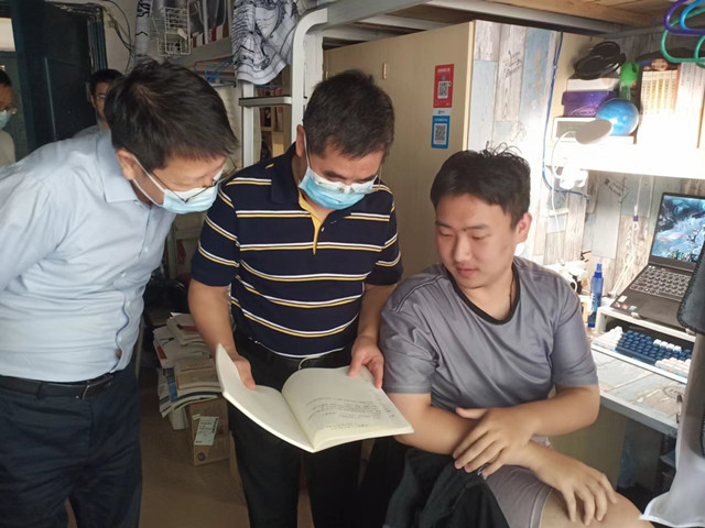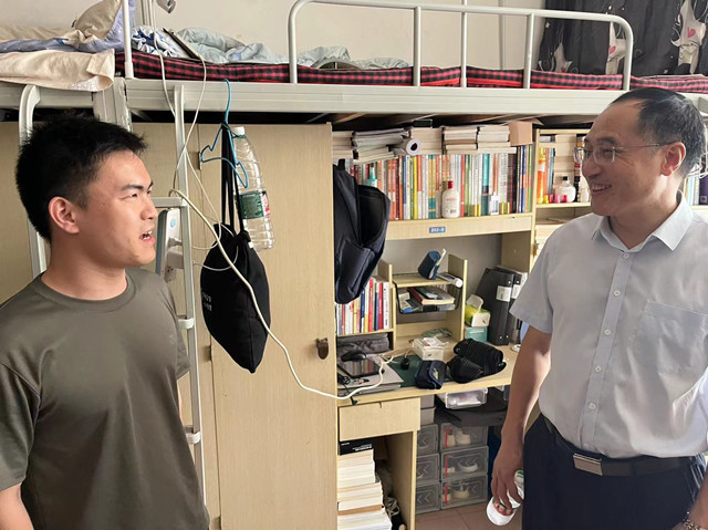 9月16日下午,校党委副书记、校长曾建平深入马克思主义学院2021级中共党史班所在的17栋316寝室,看望慰问了全体同学。曾建平从校园疫情防控、线上教学、物资保障、生命财产安全以及学生个人学习、生活等方面,与同学们进行了深入交流,并结合专业特点为大家讲述了一堂生动的“思政课”。他勉励同学们努力平衡好抗疫与学习的关系,树立远大理想,勇担时代重任,努力成为德智体美劳全面发展的具有井冈特质的时代新人。