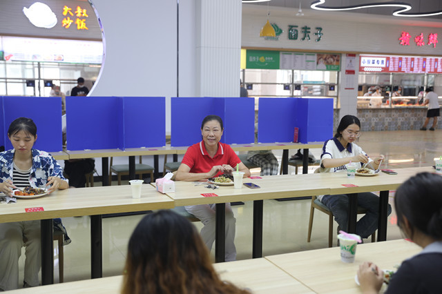 9月17日中午,校党委书记胡春晓来到第一学生食堂,与其联系的化学化工学院2021级材化2班的同学们共进午餐。胡春晓与大家重温习近平总书记关于疫情防控工作的重要讲话重要指示精神,并详细了解同学们的学习、生活、思想状态等情况,向大家征求学校在疫情防控、教育教学、管理服务等各方面的意见建议。她还与同学们相互添加了联系方式,叮嘱大家在疫情防控期间保持良好心态,认真学习专业知识,努力提升实践本领,不断将个人梦想融入到实现中华民族伟大复兴中国梦的壮丽征程中去。