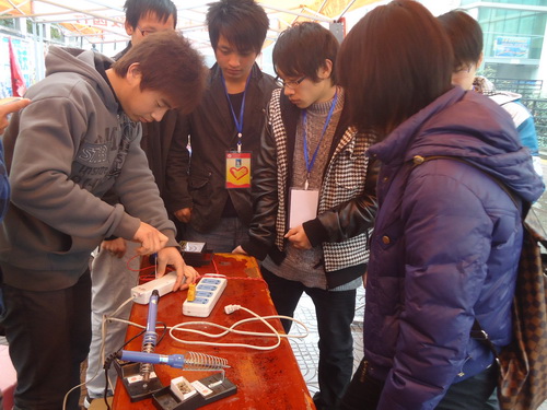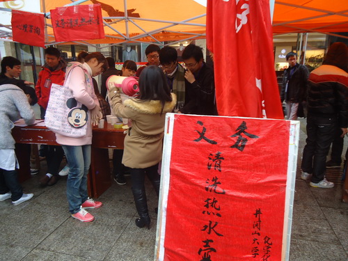 下午1时,我校学生志愿者们在校园新、老食堂门口设点为学生服务。有的同学在服务点做了简单体检;有的同学则把插座、热水壶、台灯、电脑等拿来修理。不少同学们走过一个个服务点,体会一项项服务,心满意足地夸到此次活动为同学们解决了不少实际问题,真正做到了走进同学的生活中。