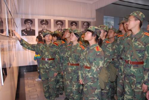 在三湾改编纪念馆里,在枫树坪,国防生深入学习三湾改编的历史背景、主要内容和重大意义,高唱《听党指挥》歌,感悟毛泽东等老一辈革命家在这里的伟大创举,发誓让年轻的心永远跟着党。