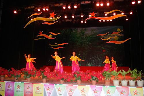 晚会由艺术学院的师生们用气势恢宏的鼓声敲响了本次晚会鼓舞人心的动人旋律,拉开了晚会欢快、喜庆的序幕。人文学院亦歌亦舞,一首《我爱你,中国》将对党对祖国的无限热爱抒发的淋漓尽致;诗朗诵《祖国颂》对祖国的挚爱之情和民族自豪感充溢其间;一曲《我要找到你》把大家带入了爱情的意境,让人如痴如醉;小合唱《相亲相爱的一家人》引来同学们阵阵叫好声;一群朝鲜姑娘伴着欢快的朝鲜族民歌《桔梗谣》翩翩起舞,仿佛把我们带到了朝鲜民族风情万种的画卷里;健美操《舞动青春》用激情的旋律,舞动着美好的青春;歌舞节目《欢聚一堂》、《手牵手》、《江南》和《暗香》又为晚会添上了浓墨重彩的一笔;当大家还沉醉在刚才动人的歌舞声中时,小品《上海滩》便粉墨登场了,诙谐幽默的声乐对白让观众捧腹大笑,拍手叫好;大合唱《爱我井大》用青春奏响了井大的未来,拥抱井大更加美好的明天;全校专职辅导员带来的合唱《辅导员之歌》唱出了他们对辅导员事业的美好憧憬与梦想,对井大的无比热爱,把晚会推向了高潮。