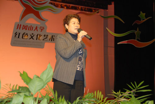 金桂英代表校党委、行政对2010年红色文化艺术节的成功举办,并向获奖的单位和个人表示热烈祝贺。她说,这次红色文化艺术节精彩纷呈、高潮迭起,高扬爱国主义的伟大旗帜,弘扬了井冈山精神,彰显了红色文化魅力,唱响了时代主旋律,展现了井大学子的青春风采。