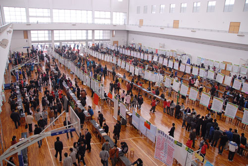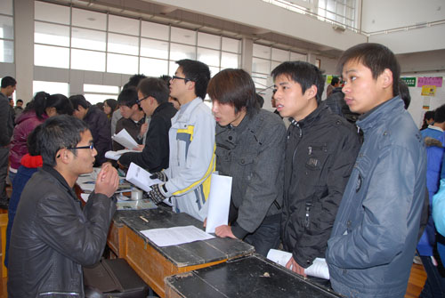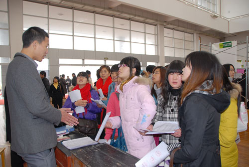今年招聘形势比往年更加火爆,有两个主要特点,一是来校选拔人才的单位达到400多家,提供就业岗位8000多个,超过了往年,二是各招聘单位提供的就业岗位质量很高,全部是针对大中专学生就业所需要的岗位。