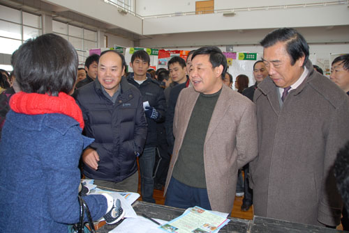 为进一步做好毕业生就业工作,帮助大学生化解就业压力。12月18日,由我校和吉安市人力资源和社会保障局联合举办的2011届毕业生供需见面会取得圆满成功。来自全国各地,部分吉安市市直单位、吉安市13个县市区的文教卫生系统单位以及工业园区的公司企业等400多家单位,来校选拔招聘人才,我校及兄弟高校应届毕业生数千人踊跃前往应聘。吉安市委常委、副市长杨群宝,校党委书记万继抗、副校长郭名根等巡视了招聘现场,校党委委员吕玉华、龙学先、肖长春等陪同。