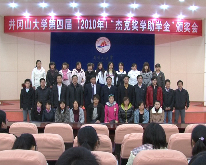 12月14日下午,我校第四届(2010年)“杰克奖学助学金”颁奖大会在学术报告厅举行。副校长王伴青代表学校向杰克控股集团赠送了荣誉锦牌。杰克控股集团执行董事陈华贵、行政总监姚海彪出席并为获奖助学生颁发了荣誉证书和奖励资助金10万元。学工处副处长、学生资助中心副主任李明敏主持,学工处副处长张霭云宣读了获“杰克奖学助学金”学生名单,