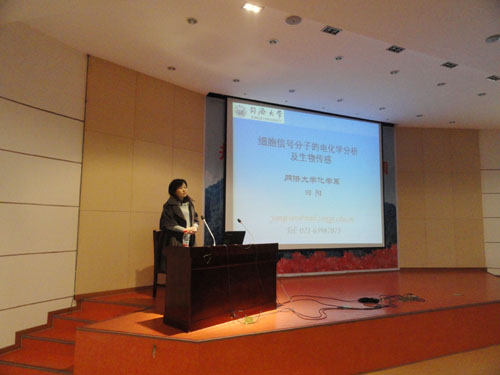 田阳教授的报告介绍了该课题组围绕细胞的分子识别分析这一基础问题,所进行的层层深入探索和研究。首先,研究了蛋白质在纳米界面上电子传递的行为,通过纳米界面调控蛋白质电化学电位,提高了细胞信号分子电化学分析的选择性;其次,为了进一步提高其灵敏度,把等离子共振效应产生的电荷分离机理与蛋白质电化学和电化学分析相结合,在提高选择性的同时,提高了电化学分析的灵敏度;再者,为了提高传感器的稳定性和再现性,对仿生酶进行了功能化的设计、合成与表面组装,通过仿生酶的官能团调控金属中心的氧化还原电位,在提高电化学分析稳定性的同时,进一步提高其选择性,从而构筑了同时具有选择性高、稳定性和再现性好的生物传感器;最后,在前述研究基础上,结合光电化学的微阵列技术,实现了细胞的阵列化培养、增殖与高选择性电化学分析的一体化。报告为我校从事生物电化学及相关研究工作的师生开拓了研究视野和提供了新的研究思路。