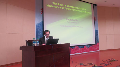 同济大学附属第十人民医院内科主任医生李伟民教授作题为《心血管疾病的诊治研究进展》讲座;同济大学附属东方医院心内科主任医生庄少伟教授作题为《心律衰竭临床诊治进展》讲座;同济大学医学院教授刘小青作题为《LOXL1介导的弹性纤维的维护在动态结缔组织中的作用》讲座。
