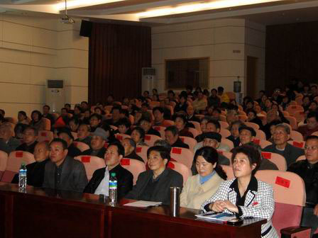 刘教授以《阴阳和谐、健康长寿》为题,围绕危害人类生命的主要杀手、疾病谱的变化原因、阴阳理论的基本特点和阴阳理论的中医养生模式等四个方面的内容,通过大量的实例,对身体健康、疾病防治、医疗保健等进行了图文并茂的讲解。刘教授的精彩演讲不时赢得大家的阵阵掌声。 到场的教职工认真听讲,仔细做笔记,还就心中的困惑现场与刘教授进行互动交流。
