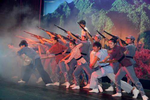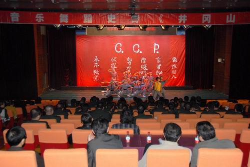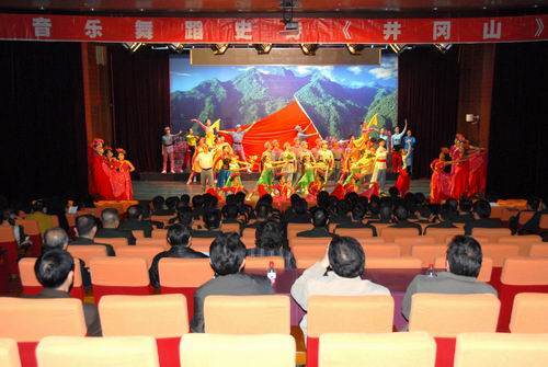 11月27日晚,音乐舞蹈史诗《井冈山》在中国井冈山干部学院举行了2010年的第9次教学演出,取得圆满成功。这也是我校2002至2010级大学生赴中国井冈山干部学院为中、高级领导干部举行的第41场教学演出。200多名来自中央组织部、国防大学以及新疆地区的党政机关与军队干部观看演出后,对节目的思想性、艺术性给予高度评价,对大学生的精彩表演给予了阵阵掌声。