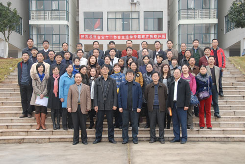 11月22日,吉安市干部自主选学专题研究班“领导力与领导艺术”“当代世界经济与科技发展趋势”开班式在我校举行。校长张泰城出席并为学员上第一课,副校长罗学渭致辞,办公室副主任肖游章主持,市委组织部干部教育科科长邓志华作动员。吉安市参加自主选学的副科级以上干部90余人,以及我校培训授课的教师等参加了开班仪式。
