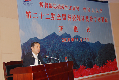11月14日,教育部思想政治工作司司长杨振斌为第二十二期全国高校辅导员骨干培训班学员作辅导报告。校长张泰城主持,副校长罗学渭出席了报告会。