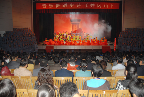 11月14日晚,第二十二期全国高校辅导员骨干培训班全体学员在校观看了音乐舞蹈史诗《井冈山》,校长张泰城、副校长罗学渭以及部分大一新生1500多人一起观看了演出。