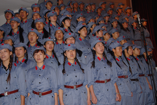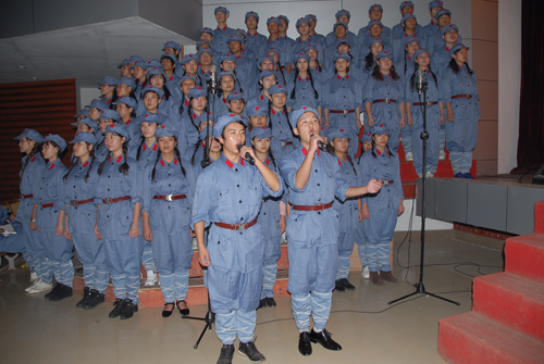 那一段历史我们不能忘记,那一种精神我们必须传承。台上演员倾情演绎,舞台两侧近300名合唱队员激情演唱,深深地感染和打动了在场的所有观众,观众们仿佛都被拉回到了那个战火纷飞的年代,许多学员和师生情不自禁地与合唱队员一起哼唱起了那些经典的红歌。