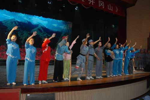 11月5日晚,中国中化集团公司党组成员、副总裁、中化石油中心主任、中化石油有限公司总经理、中化实业有限公司总经理张志银,中化石油中心副主任、中化石油有限公司副总经理赵晓春,中化石油有限公司副总经理曾晓渝,中化实业有限公司副总经理江涛,中化石油中心财务总监兰海,中化石油有限公司总经理助理廉黎平、徐辉林,中国中化集团公司副总裁秘书赵欣,在我校兴致勃勃的观看了由中国井冈山干部学院、同济大学与我校联合创编,我校大学生演出的音乐舞蹈史诗《井冈山》。校党委书记万继抗,校长张泰城,副校长郭名根、罗学渭等陪同。学校有关部门负责人,以及部分2010级新生共300多人一同观看。