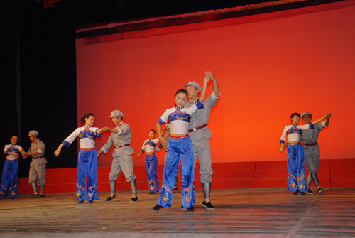 “哎呀嘞,红军哥哥你慢慢走,小心前面路上的石头呦”……随着优美的旋律响起,台下顿时掌声如潮。《打只山歌过横排》、《白头到老不断情》、《绣褡裢》一首首耳熟能详的歌曲以其独特的民间风格,灵活的形式,多变的手法,生动的语言,优美的旋律深深感染了到场的每一位观众。小品《马前托孤》讴歌了兴国人民在国内革命战争时期舍小家为大家的革命精神。剧团演出人员和台下师生共同合唱《苏区干部好作风》更是把整台演出推向高潮。