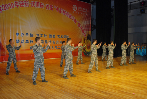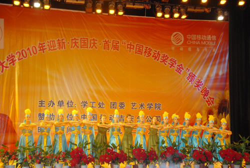9月29日晚,由我校主办,中国移动吉安分公司赞助的2010年迎新晚会暨庆国庆晚会举行。党委副书记金桂英,副校长罗学渭以及党委委员龙学先、肖长春等,中国移动吉安分公司总经理张丽华、副总经理黄圣明等,以及1500多名师生到场观看。