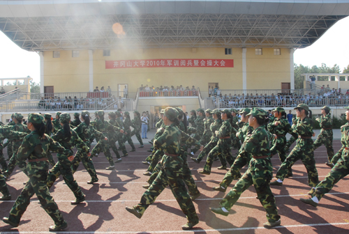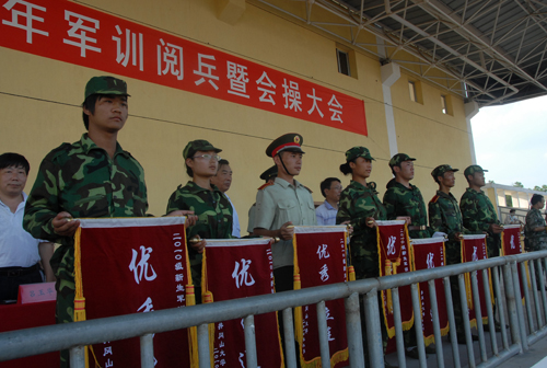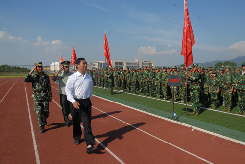 他指出,同学们在军训中提高了思想政治觉悟,增强了国防观念和国家安全意识,提高了综合素质,学到了服从命令,一切行动听从指挥的好传统,学到了顽强拼搏、不畏艰难的好品格,学到了不怕牺牲、献身祖国的好思想,学到了团结协作、顾全大局、维护集体荣誉的好作风。他希望同学们在即将开始的大学学习生活中,保持、巩固和发扬军训成果,进一步培养自己的综合素质,顺利完成从中学生到大学生的角色转变。希望同学们发挥军训工作中的拼劲、闯劲、韧劲,发挥军训中不怕苦、不怕累、勇于战斗、敢于胜利的精神,希望同学们继续巩固和发扬集体主义精神,努力成为建设祖国的有用之才,将来为中华民族的伟大复兴贡献自己的聪明才智。