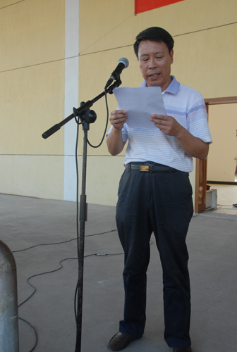 王伴青首先代表学校向指导我校军训工作的吉安市武警支队承训官兵和国防生教官表示崇高的敬意,向刻苦参训的全体同学表示慰问,向在军训中涌现出来的先进集体和先进个人表示祝贺,向在军训中付出辛勤劳动的老师们表示衷心感谢。