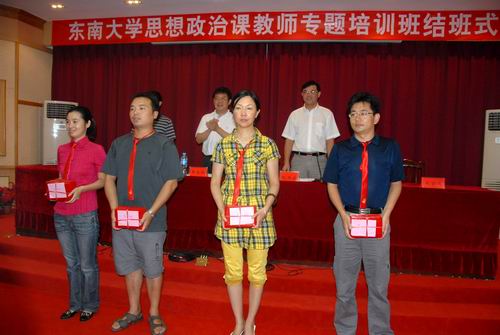 东南大学专题培训班班长魏福明以及学员代表盛凌振、涂亚峰、周龙英、徐志芳畅谈了学习感想和体会。他们认为,10天的学习,自己每天都被感动着,也有很多的感悟。通过学习,进一步坚定了理想信念,加深了对党的感情,对党的光荣传统和优良品质有了更深刻的认识,对自己今后的教学科研活动也将产生积极的促进作用。