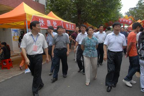 9月1日上午,在校领导张泰城、金桂英、桂国庆、郭名根、罗学渭、王伴青、黄翔峰以及党委委员吕玉华、肖长春在有关部门负责人陪同下,到各学院报名点看望2010级新生及家长,慰问工作人员。