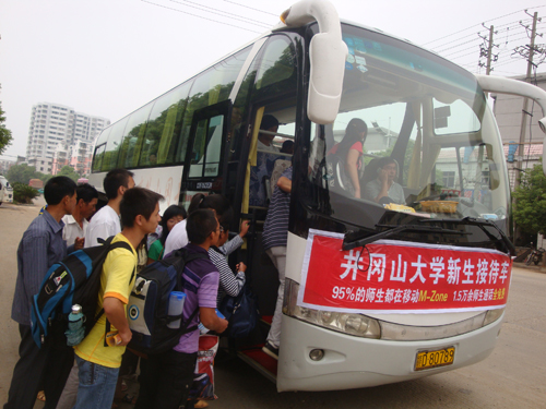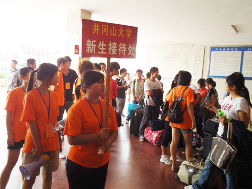 校外的吉安火车站、吉安中心汽车站、青原汽车站、城北汽车站、城南汽车站5个迎新点24小时都有值班的迎新接待工作者,不少工作人员都连续工作十多个小时依然不知疲倦,各个迎新点总能看到志愿者送水和搬运行李的身影;总能看到志愿者温暖的微笑,听到志愿者亲切的问候。