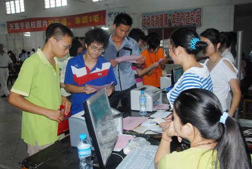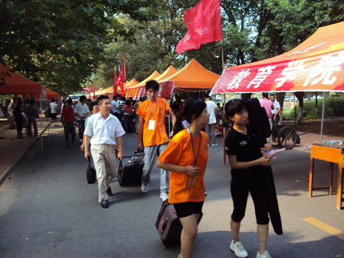 今年的迎新工作学校动员了包括学生干部、劳动班级及自愿服务者共2300余名学生参与,2010届各班班主任及辅导员悉数在接待站服务,学校组成的医疗小组和联防小分队也都各司其职,圆满完成了5000多名新生以及近4000名家长的接待任务。为使迎新工作做到细致周到、有条不紊,校团委和学校各学院分工合作、齐心协力,使迎新工作做到一条龙服务。