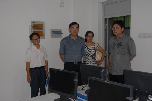 座谈会后,洪波一行在桂国庆的陪同下到电子与信息工程学院实验室参观考察。