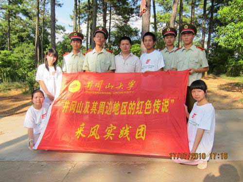 “井冈山的红色传说”采风大学生社会实践活动从2007年开始开展,受到了师生的喜爱和社会各界的好评,已编辑出版了《井冈山的红色传说》三册,共收录了370个红色传说,记载了当年红军抛头颅、洒热血,前仆后继,百折不挠的感人事迹,凝聚了井冈学子对革命英烈的深深缅怀和敬仰之情,成为井冈山红色资源宝库中的一枝奇葩。红色传说采风活动至今已是第四个年头,活动范围扩展到赣南、湘南等井冈山周边地区,今年采风团成员以国防生为主,采风活动将深厚的红色资源和学校的办学优势与国防生的教育培养紧密结合,是学校打造“井冈特色”国防生培养模式的有益探索。(校团委滕永琛)