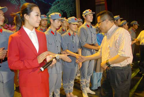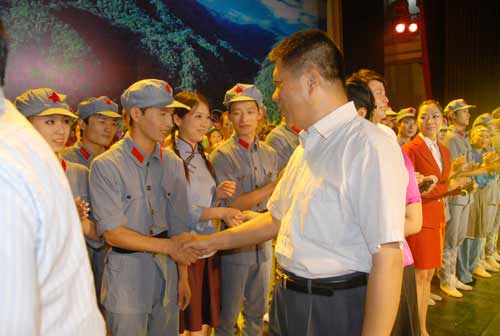 科技部机关党委常务副书记王俊明,科技部机关党委副书记、纪委书记董三多,同济大学常务副校长李永盛,我校校长张泰城、副校长罗学渭等观看了演出,科技部中国科学技术信息研究所党政领导干部职工等300多人观看了演出。演出结束时,王俊明,李永盛,张泰城,以及中国科学技术信息研究所党政领导等走上舞台,接见大学生,祝贺演出成功。