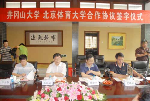 6月29日上午,井冈山大学、北京体育大学合作协议签字仪式在北京体育大学隆重举行。北京体育大学党委书记、校长杨桦与我校校长张泰城分别代表两校,在《北京体育大学与井冈山大学合作协议书》上签字。北京体育大学党委副书记何珍文主持仪式,副校长池建、程建平、王芬,纪委书记彭晓吉,以及有关部门单位负责人出席。我校副校长曾建平,党委委员、办公室主任吕玉华以及有关部门单位负责人出席。