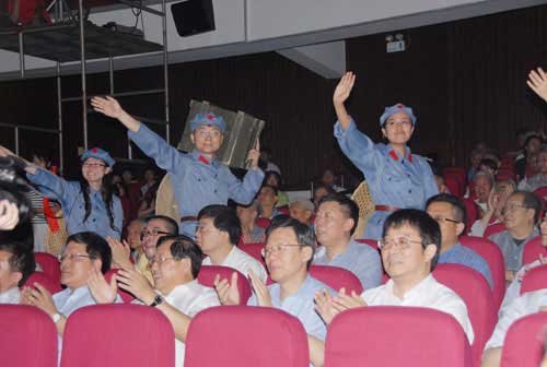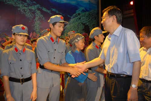 6月30日下午,为庆祝中国共产党成立89周年,国家科技部举行音乐舞蹈史诗《井冈山》专场演出。全国政协副主席、科技部部长万钢,科技部党组书记、副部长李学勇,科技部党组成员、副部长曹健林、王伟中,科技部党组成员、中央纪委驻科技部纪检组组长郭向远,科技部秘书长郑国安,副秘书长王志学,同济大学党委书记周家伦,我校校长张泰城,副校长罗学渭、曾建平等观看。观看演出的还有,科技部直属机关党委、办公厅、人事司、条财司、机关服务中心干部职工,以及科技部离退休老干部等共300多人。