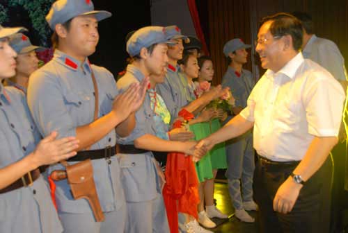 李学勇说,为庆祝中国共产党成立89周年,科技部党组决定,邀请同济大学和井冈山大学的学生为科技部联合演出音乐舞蹈史诗《井冈山》。在科技部的全部三场演出都很精彩,大学生为我们送来了一台优秀节目,让我们的干部在党的生日受到了一次生动的井冈山精神教育。