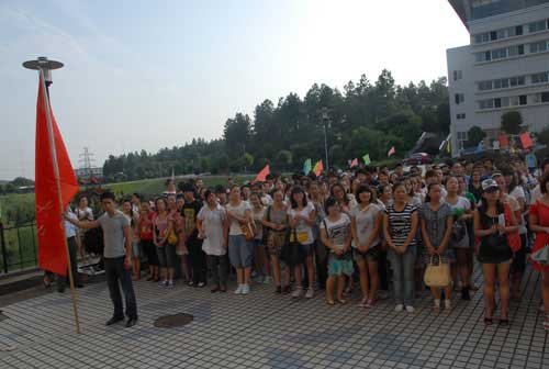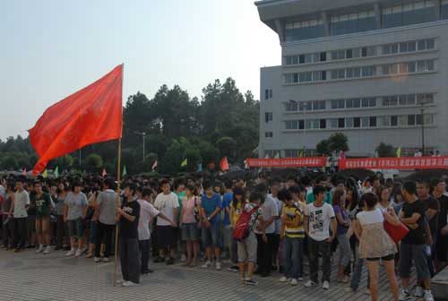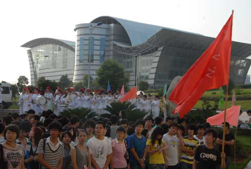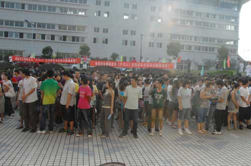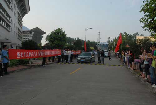 汽车缓缓启动后,数百名师生夹道欢送。