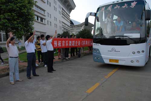 6月26日下午,学校隆重举行仪式欢送赴科技部、教育部演出音乐舞蹈史诗《井冈山》的师生。校长张泰城出席并讲话,副校长罗学渭、王伴青、曾建平,党委委员吕玉华、肖长春,以及有关部门负责人出席。艺术学院党委书记颜见开主持仪式,音乐舞蹈史诗《井冈山》创编组成员蔡海红讲话,同济大学学生徐雅旋和我校学生刘乃枫分别代表参加演出的大学生发言。