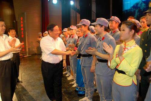 6月18日晚,全国政协副主席、科技部部长万钢在我校视察工作后,又兴致勃勃观看了音乐舞蹈史诗《井冈山》。科技部副部长杜占元,江西省委常委、省纪委书记尚勇,江西省政府副省长谢茹,科技部发展计划司司长王晓方,科技部政策法规司副司长林新,科技部高新技术发展及产业化司副司长戴国强,科技部农村科技司副司长王喆,科技部社会发展科技司副司长田保国,科技部办公厅副巡视员戴钢,中国科学技术发展战略研究院副院长王奋宇,江西省政府副秘书长晏驹腾,江西省科技厅副厅长左喜明,吉安市委副书记、市长王萍,吉安市副市长左继生等陪同。在校的领导张泰城、金桂英、桂国庆、郭名根、罗学渭、王伴青、曾建平,校长助理黄翔峰,党委委员吕玉华、肖长春等陪同。