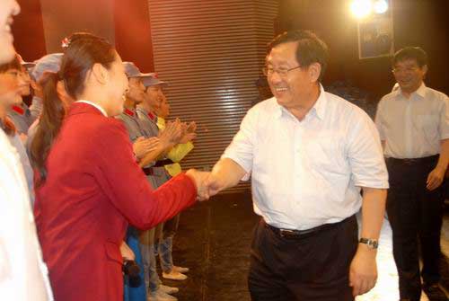 演出结束后,万钢等领导走上舞台,亲切接见了参加演出的大学生,祝贺演出成功。他还与参加合唱的大学生亲切握手,并与他们合影留念。