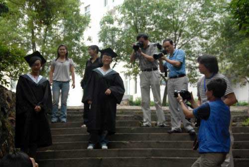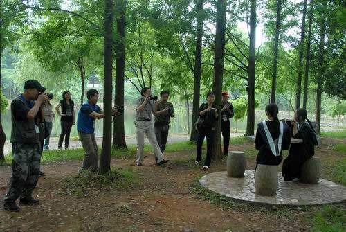 采风团的艺术家们参观了校园,对我校优美的校园风光以及人文景观大加赞赏,并用他们手中的照相机,拍摄了一个个精彩的镜头。